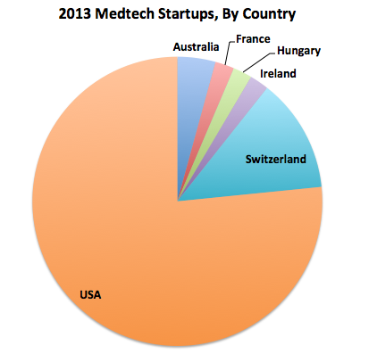 Therefore, I thought I would detail the innovation in medtech that I have seen in 2013 based on the number of medtech startups for the year, what the specific technologies were, and the country and, if USA, the state.