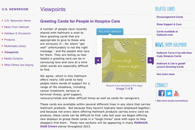 They have also released a statement entitled: “Viewpoints: Greeting Cards for People in Hospice Care.“ Screen shot below: